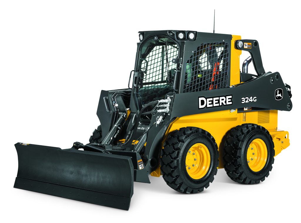John Deere snow and utility blades provide additional productivity in snow removal and light dirt work. Blades angle hydraulically 30 degrees, right or left enabling easy snow placement via in-cab controls.